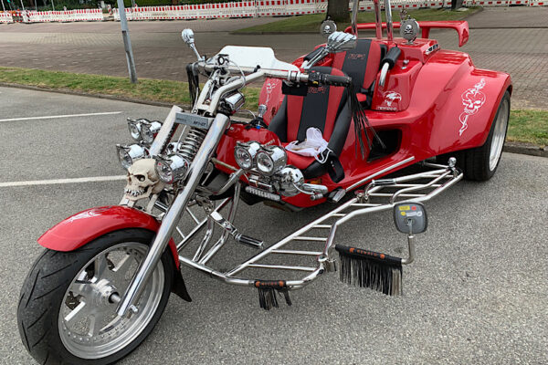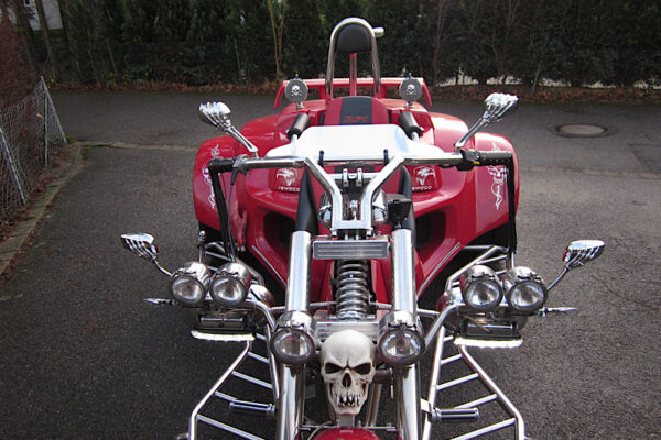 An die Optik der zu der Zeit kommenden Ttikes konnte man sich nicht so recht gewöhnen. Kein sichtbarer Motor mehr, keine freilaufende Räder mit eigenen Kotflügel – es fehlte einfach alles. Aber dennoch hatten die Trikes etwas, dem man einfach nicht widerstehen konnte. Leistung satt, Komfort, Luxus…… alles was das Herz schneller schlagen ließ. So dauerte es auch nicht lange, bis ein weiterer Kaufvertrag unterschrieben wurde.