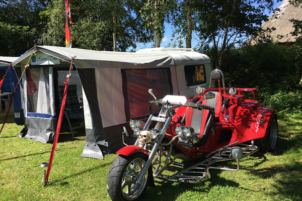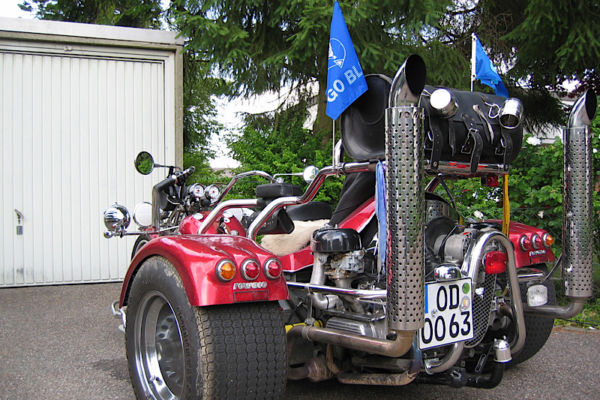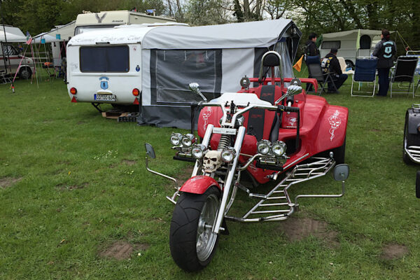 Wie schon auf der Startseite erwähnt, wird diese Seite mehr oder weniger den Trikes gewidmet. Wir haben jetzt bereits unser 3. eigenes Trike. Gefahren habe ich schon sehr viele, da sich mir in der Anfangszeit ab 1991 die Möglichkeit bot, häufig auf Miettrikes eines meiner Kunden zuzugreifen. Hier lernte ich erste Unterschiede zwischen den Trikes und Marken sowie Leistungen kennen. 50 PS waren in der Zeit schon viel und das NONPLUSULTRA. Man brauchte damals noch nicht die große Leistung, da es meist mit Zelt oder kleinem Anhänger zu den Triketreffen ging. Heute sieht die Welt schon ganz anders aus. Immer mehr Leistung wurde möglich. Vom VW zu Subaru, Ford, Mitsubishi, Smart, Chevy, …. 200 PS sind heute keine Seltenheit mehr. Was allerdings heute immer noch einbremst sind die Anhängelasten von 550kg gebremst, die die meisten (besseren) Trikes haben. Hier gibt der Markt nicht allzuviel her an leichten Wohnwagen. Renner ist immer noch der Qek, deren Anschaffungspreis in den letzten Jahren immer mehr in die Höhe schoß. Klar – Angebot und Nachfrage. Neben den Qeks findet man noch einige Rapidos, Klappies, Eribas, aber dann hört es auch schon fast auf. Wir haben auch hier ganz klein und langsam angefangen. Die ersten Male mit Anhänger wurden mit einem Einschläfer gemacht. Einschläfer daher, da nur für eine Person das Bett reichte. Ein kleiner, süßer Anhänger in U-Boot-Form. Das Blechdach wurde hochgeklappt und an den Seiten eine schwere Zeltwand eingezogen. Zugang von hinten. Da dies langsam keine Lösung mehr war, kam der Qek. Von einem ehemaligen Clubkollegen kauften wir diesen ab. Hier ging es dann schon los mit den persönlichen Anpassungen und Anforderungen, die bei den ganzen Triketreffen der vorangegangenen 20 Jahre wurden.
