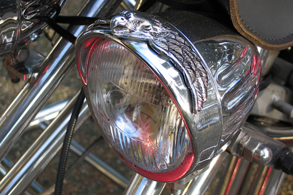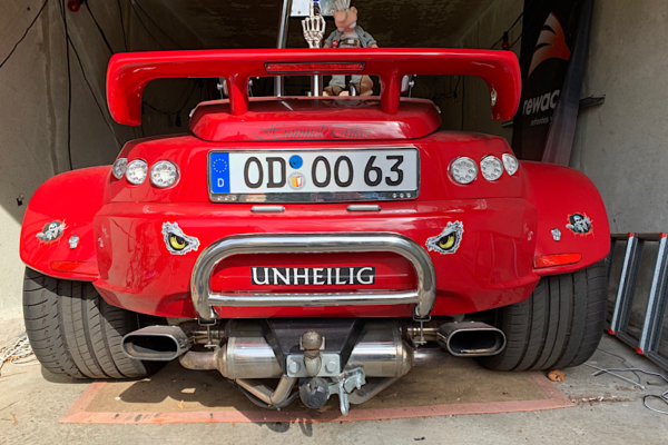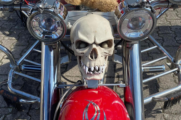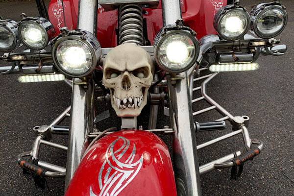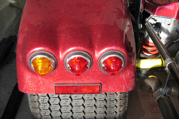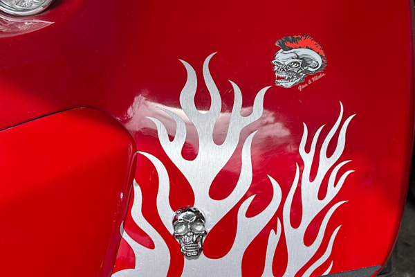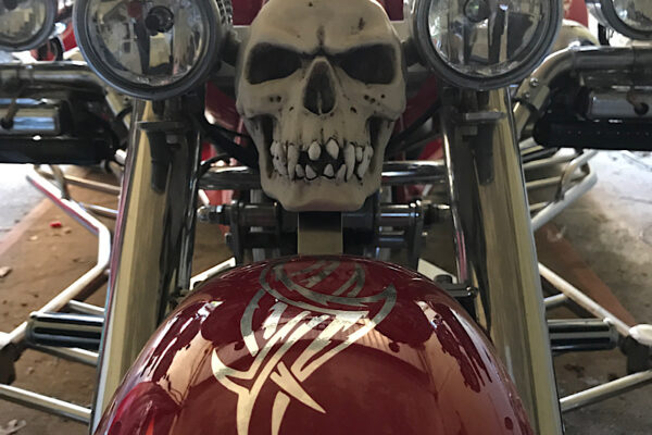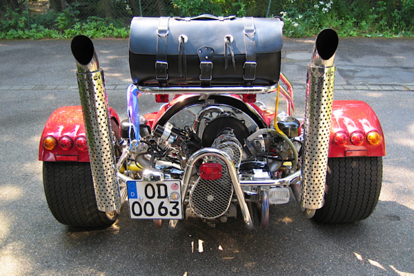 Das erste eigene Trike wurde dann doch schnell wieder abgeschoben. Der Drang nach etwas größerem, aktuellerem, schönerem, etc. wurde doch immer größer. In den vergangenen Jahren mit dem „Einsteiger“ wurden doch so einige Wünsche immer größer. Die Anforderungen an einem neuen Trike waren schnell gesteckt. In 1. Linie war es der Komfort, die Leistung und die Optik, die uns zu der Auswahl des aktuellen HS4 führte. All das, was das Devil‘s nicht hatte, wurde hier realisiert. Neben dem Glitzereffektlack gab es jede Menge Chrom und Edelstahl und natürlich die breiten Reifen, die es unbedingt sein mussten.